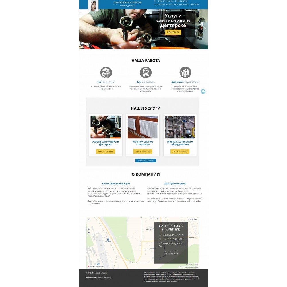 Бизнес-сайт по сантехническим услугам в г.Дегтярске от веб-студии Максвебсайт г. Среднеуральск